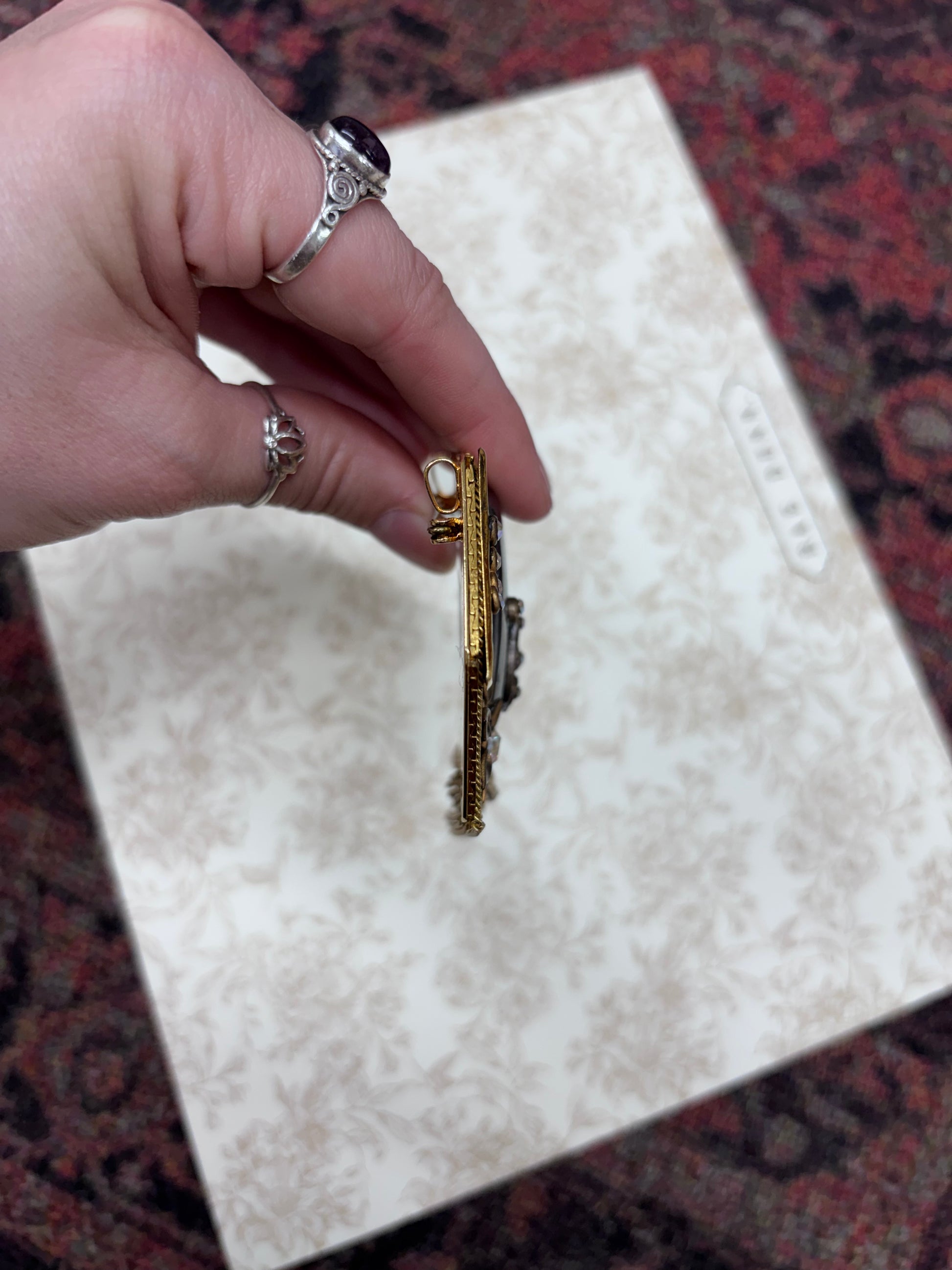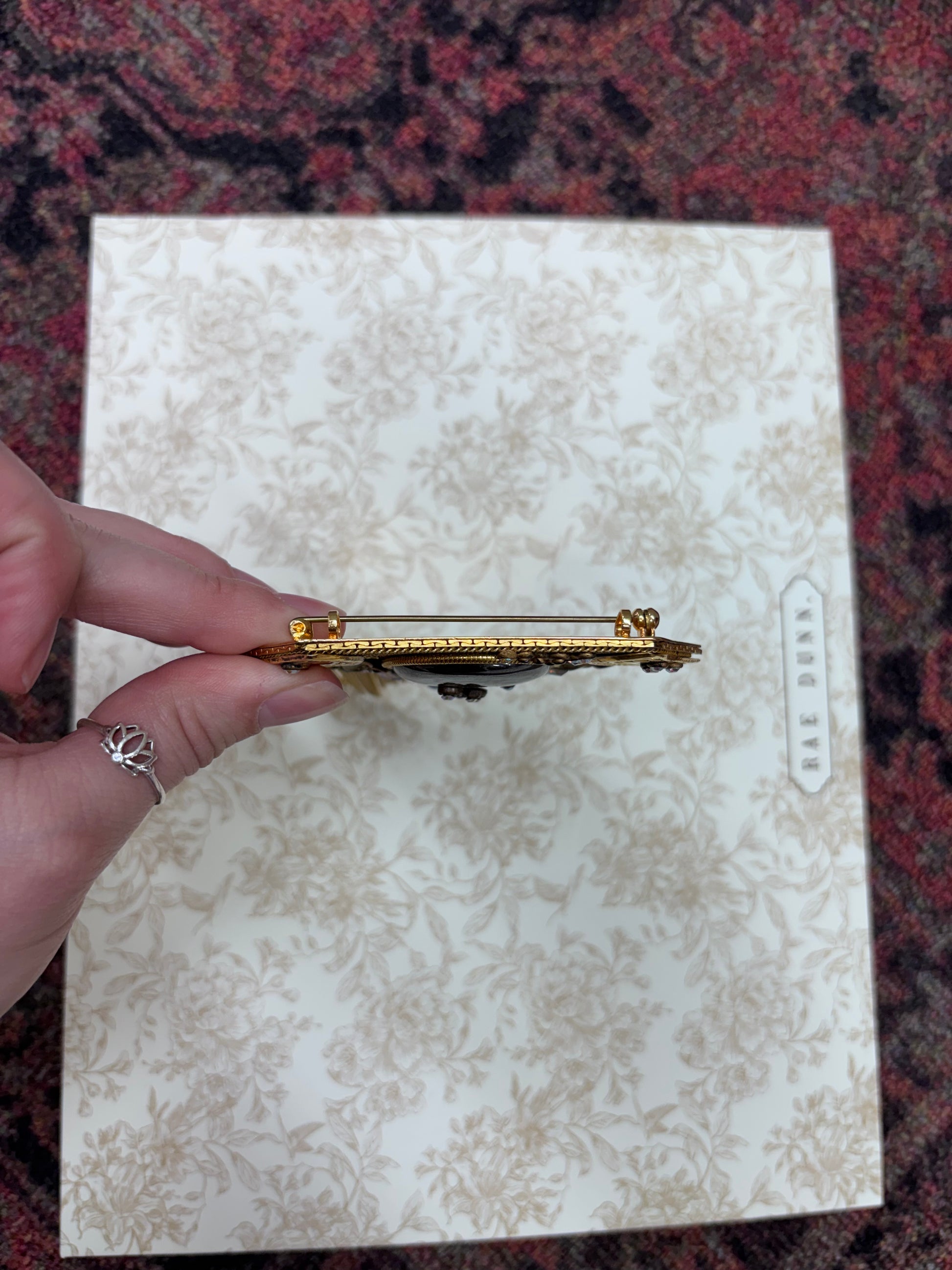 Vintage Marena Gold-Tone and Black Cabochon Crystal Dangle Brooch Pendant
